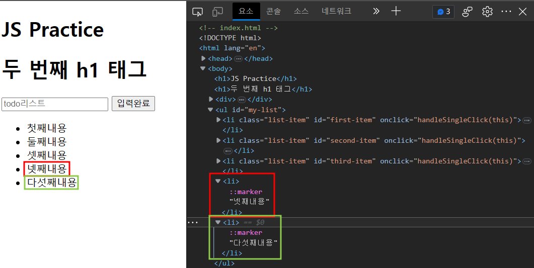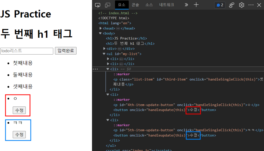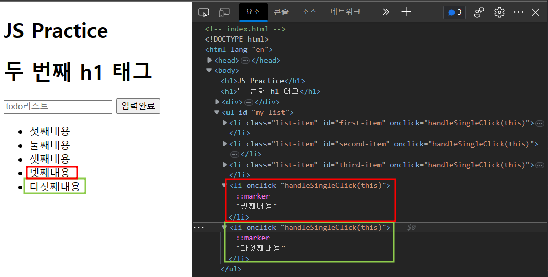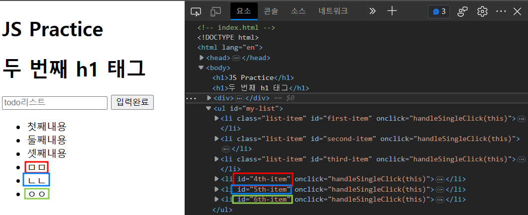 - 추가된 li 태그에 onclick 옵션이 추가된 것을 확인할 수 있다