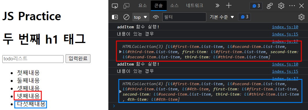- HTML Collection 옆에 숫자가 곧 배열의 길이임