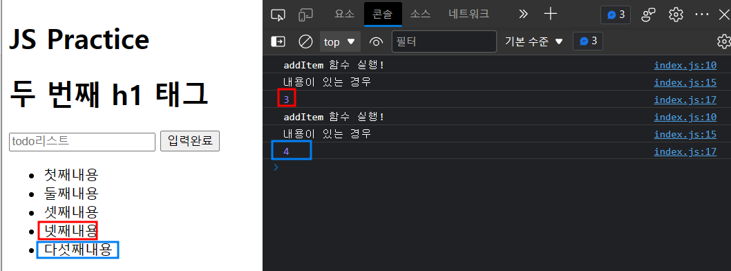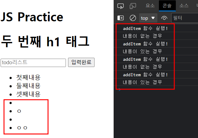 - if문의 콘솔로그로 보아 if문이 잘 동작하고 있다는 것을 알 수 있다