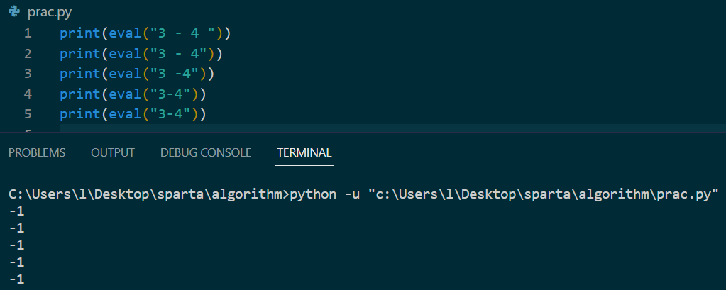 목차 eval() 제목 그대로 문자열로 된 수식을 계산하는 함수다 eval(문자열로 된 계산식) 위와 같은 형식으로 사용한다 문자열 형식의 수식 어디에 공백이 있더라도 숫자와 연산자를 인식해서 잘 계산한다 공유하기 게시글 관리 개발 벌크업 저작자표시 (새창열림) 목차 목차 닫기