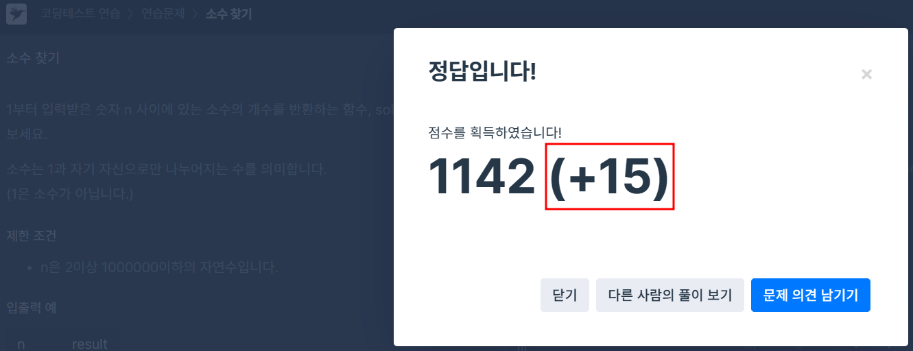 심지어 이제까지 얻은 점수 중에 제일 높은 점수를 얻었다!위에 함수 하나에 for문 2개 겹쳐 쓴 풀이 실행 결과아래 완성된 코드 실행 결과