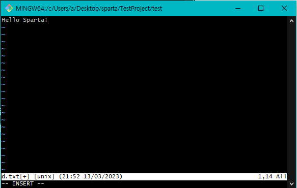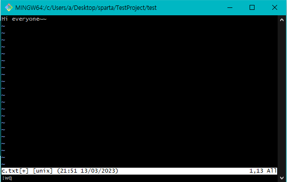 - 입력한 내용을 저장하는 방법 : (입력 모드에서 빠져나온 뒤) :w (콜론더블유)
