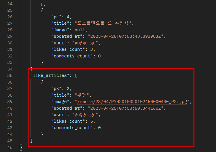 - 시리얼라이저는 ArticleListSerializer를 사용해서 import를 해줬다