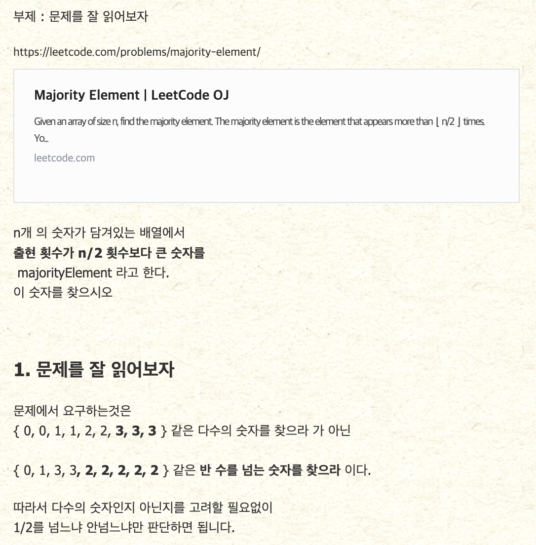 - 정답 요소가 배열의 과반수를 차지하고 있다면 candidate에 들어갈 확률이 높은 건가